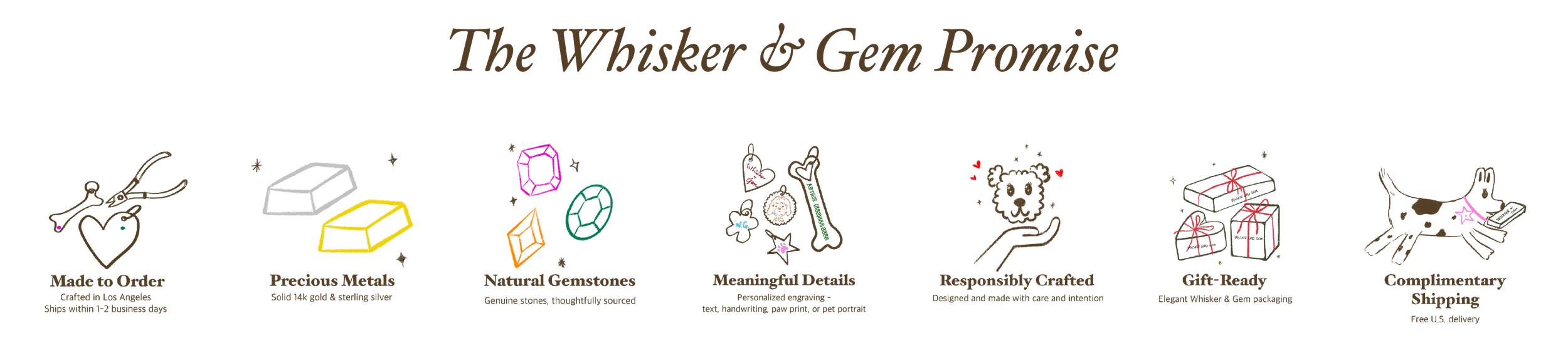 At Whisker and Gem, we are devoted to crafting bespoke fine jewelry that tells a story as unique as the person—and pet—who inspires it. From our Los Angeles atelier, we proudly support local artisans while offering beautifully handcrafted pieces made to last a lifetime.